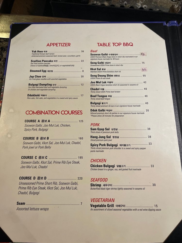 Soowon Galbi KBBQ, located in Los Angeles, offers a delicious Korean BBQ experience. With options for reservations, delivery, and takeout, this restaurant is a convenient choice. The menu features a variety of dishes, such as Bulgogi Dumplings for appetizers and marinated meats like Grilled Kkot Sal and Dduk Galbi for beef lovers. Customers rave about the attentive service and flavorful food, with standout dishes like the Soowon Galbi being a must-try. The restaurant's banchans (side dishes) and cold noodles are also highly praised, adding to the overall dining experience. Despite the slightly higher prices, the quality and taste of the dishes make it worth the cost. If you're looking for a top-notch KBBQ spot with exceptional service and a welcoming atmosphere, Soowon Galbi KBBQ is the place to be.