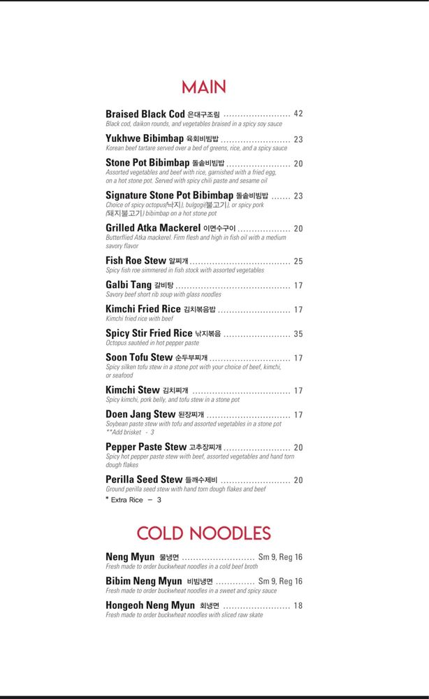 Cooked thinly sliced USDA prime beef brisket cooked with mung bean sprouts. Includes one set of side dishes and one rice *No substitutions